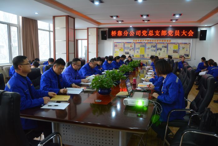 12月4日上午9:30,橋靠分公司黨總支部組織黨員、預備黨員、發展對象、積極分子共46人召開黨員大會,黨總支部書記趙怡春同志主持。