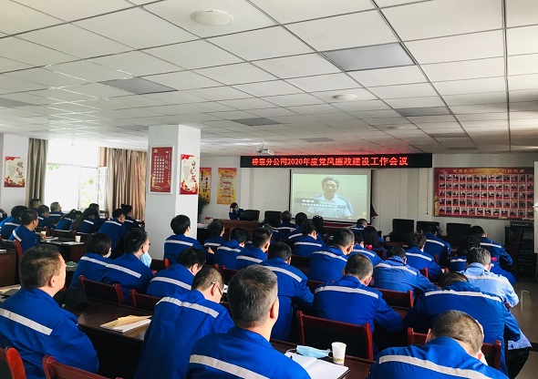 5月12日下午,橋靠分公司黨總支部組織黨員、環節干部共70人,在黨員活動室召開2020年度黨風廉政建設專題工作會議,黨總支部書記趙怡春主持會議。