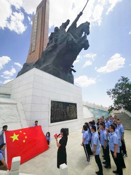 6月23日上午,三合村分公司第一黨支部組織全體黨員赴百靈廟紅色教育基地參觀學習,開展“七·一”黨的生日主題黨日活動,分公司抗疫先鋒,第一支部黨員、發展對象、積極分子共計33人參加。