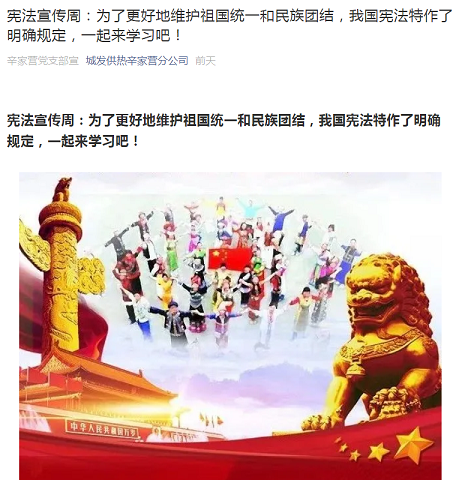 本次活動以線上宣傳為重點,圍繞活動主題開展多層次普法宣傳活動。黨員干部通過學習強國平臺,線上學習憲法知識、黨的十九屆五中全會精神、疫情防控等相關法律法規及習近平法治思想等重要論述。分公司運用微信公眾號及微博平臺,推送憲法基礎知識及宣傳標語、海報等。利用LED滾動屏播放憲法宣傳標語,形成了良好的宣傳氛圍。