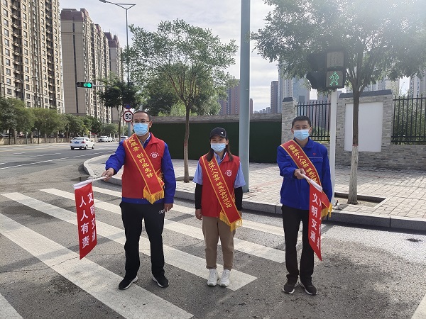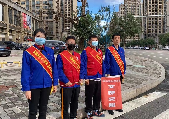 上午8:30,黨員同志們身穿紅色馬甲,佩戴黨徽和綬帶,手拿指揮交通督導旗在愛民街與豐州北路交叉十字路口,協助交警指揮交通,督導市民文明出行。“綠燈行、紅燈停”同志們精神抖擻的站在十字路口,拿著紅色指揮旗指揮著交通。