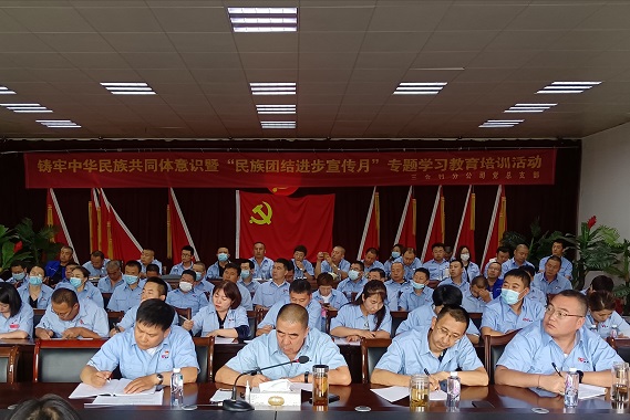 9月14日下午,三合村分公司黨總支部組織開展鑄牢中華民族共同體意識(shí)暨“民族團(tuán)結(jié)進(jìn)步宣傳月”專題學(xué)習(xí)教育培訓(xùn)活動(dòng)。會(huì)議特邀市委黨校統(tǒng)戰(zhàn)理論教研室副主任、副教授巴特爾老師進(jìn)行系統(tǒng)授課。分公司全體黨員、預(yù)備黨員、發(fā)展對(duì)象、入黨積極分子、工段長(zhǎng)以上環(huán)節(jié)干部共計(jì)82人參加。