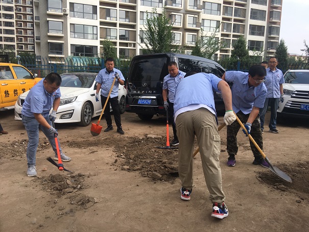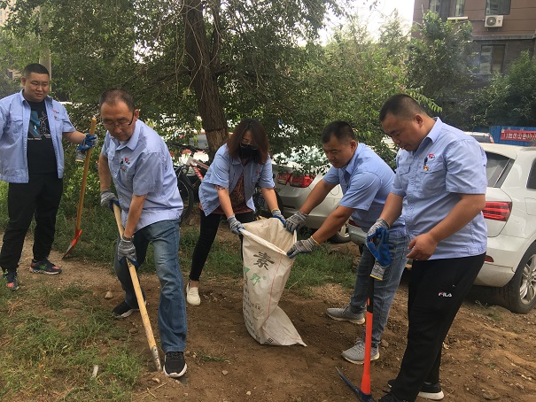 9月2日上午,橋靠分公司黨總支部組織黨員前往金漢御園小區南門,對門口附近受損道路的路面進行維修、平整。