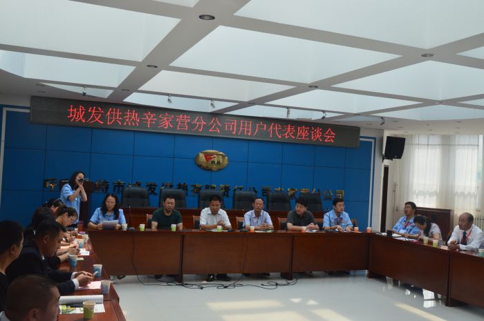 2014年8月13日上午,召開了“辛家營供熱分公司熱用戶代表座談會”。參加會議的有總公司領導張永、寶音達來、吳利勤、王軍、王亞寧,辛家營分公司領導張宇、朱學玲、丁成斌、客服處處長、各運營所所長,以及十三位熱用戶代表,共計三十一人。會議由朱學玲主持,就往年的供暖情況、存在問題,與熱用戶代表進行溝通交流。