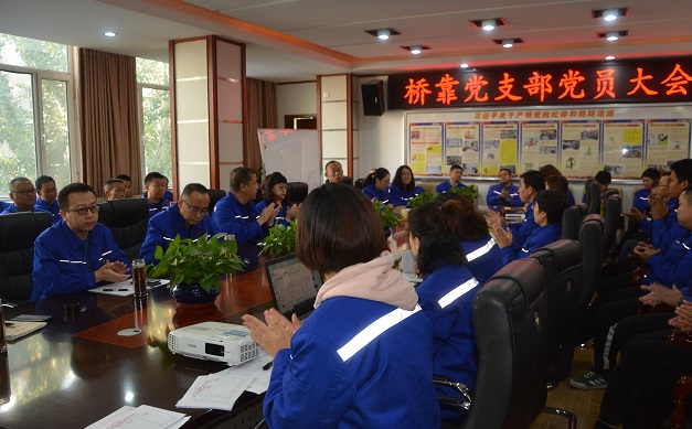 10月11日上午9點,橋靠分公司黨支部組織黨員、預備黨員、發展對象、積極分子65人在行政樓三樓會議室召開黨員會議。城發公司總經理呂德育同志、黨委副書記張永同志參加會議,紀檢監察室工作人員監督指導,黨支部書記趙怡春同志主持。