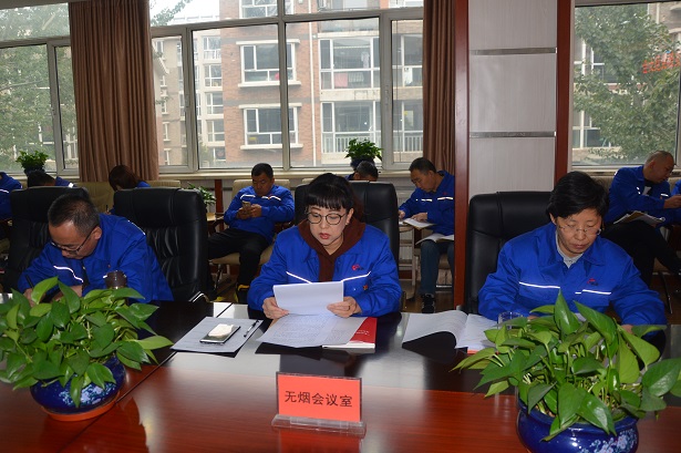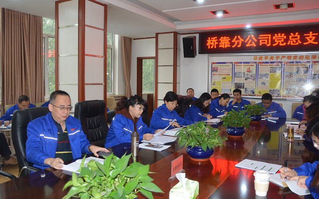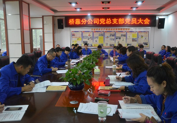 10月17日上午9點,橋靠分公司黨總支部組織黨員、預備黨員、發展對象、積極分子共50人在行政樓三樓會議室召開黨員會議。黨總支部書記趙怡春主持。