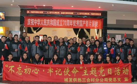 10月25日下午,三合村分公司黨總支組織全體黨員在濱海橫店影院集體觀看了慶祝新中國(guó)成立70周年電影《我和我的祖國(guó)》,分公司黨員、預(yù)備黨員、發(fā)展對(duì)象、入黨積極分子共計(jì)46人參加。