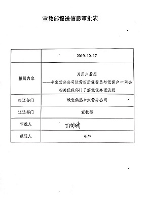 新一年度的收費工作已經有條不紊的展開了,辛家營分公司運營四所轄區內的低保熱用戶較多,為了給轄區內的低保熱用戶提供更加準確、快捷的服務,運營四所的催費員與陽光美居、東達景苑廉租房的低保熱用戶一同去到相關部門了解開低保證明的辦理流程,為后續辦理開低保證明的熱用戶打開了一條方便、快捷的通道。