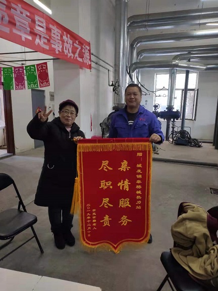 12月5日上午,劉大娘打電話到運(yùn)營(yíng)所反映家中暖氣不熱,運(yùn)營(yíng)所接到電話,迅速組織運(yùn)行人員上門(mén)處理。經(jīng)測(cè)溫,大娘家中18.5°,雖然溫度達(dá)標(biāo),但未達(dá)到人體舒適溫度,運(yùn)行人員檢查發(fā)現(xiàn),家中濾網(wǎng)堵塞嚴(yán)重,運(yùn)行人員為大娘家清洗了濾網(wǎng),并對(duì)家中的暖氣片進(jìn)行了沖洗。當(dāng)晚,客服人員對(duì)用戶進(jìn)行了回訪,劉大娘表示溫度已明顯提高。今天上午,為表示感謝,劉大娘為運(yùn)營(yíng)所送來(lái)錦旗。