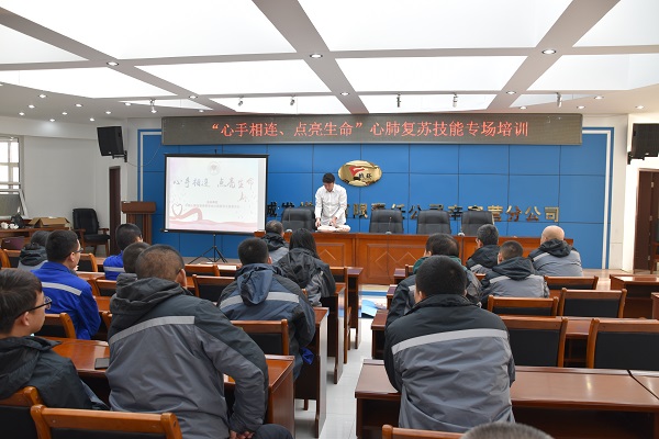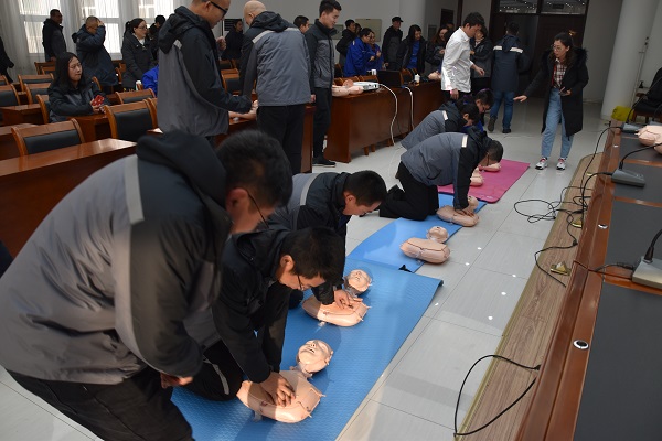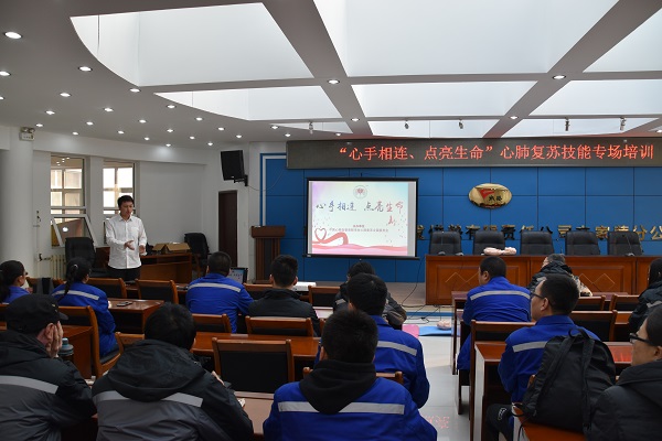 1月3日,辛家營分公司工會邀請呼市第一醫院張鵬飛、焦瑞芳2名醫生對50余名干部職工進行“心手相連,點亮生命”心肺復蘇技能專場培訓。