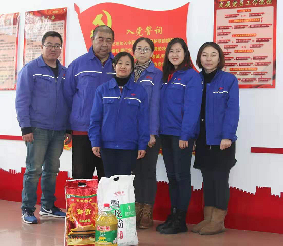 1月16日上午,三合村分公司副經理張學英、黨群處處長史琪、工會副主席朱迪代表三合村分公司向分公司3名困難職工劉海峰、武貴軍、張竹英送上米、面、油節前慰問品,讓困難職工深切感受到公司的關懷和溫暖。