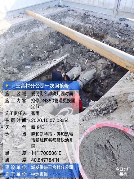 10月7日,該處漏點搶修全部結(jié)束,保證了一次管網(wǎng)供熱運行。