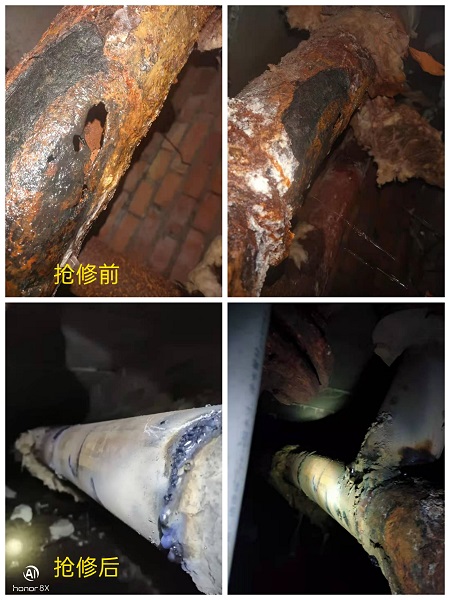 下午15時,儲運站機組啟循環泵恢復供熱。工作人員認真排查找到漏點一處,位于隆興鋼材市場,3小時內將影響面積從15萬平方米縮小到1.1萬㎡。由于該管網老化嚴重,需更換DN125管道1米。經過6個小時連續作業,于晚間23時更換完畢,恢復供熱。