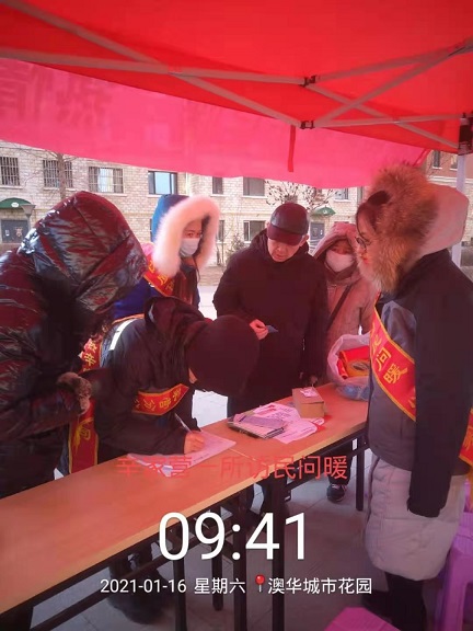 1月16日,辛家營分公司開展了本采暖年度第十四次“訪民問暖”專項活動。本期“訪民問暖”活動走訪了澳華城市花園與錦泰榕城小區(qū),共計走訪用戶31戶,填寫了《訪民問暖記錄表》20份、《居民供熱問卷調(diào)查表》18份、發(fā)放城發(fā)供熱服務(wù)手冊15本。