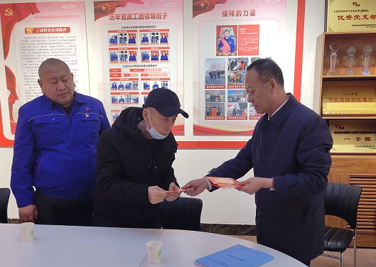 春節(jié)來(lái)臨之際,為了讓困難黨員真正感受到城發(fā)公司黨委的溫暖和關(guān)懷。2月8日上午,城發(fā)公司黨委副書(shū)記、工會(huì)主席張永,黨委辦公室主任胡日查一行來(lái)到三合村分公司慰問(wèn)困難黨員,為4名困難黨員送去慰問(wèn)金和新春祝福。