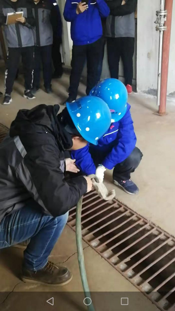 演練活動中,第一項演練是模擬熱力站機組管道發生泄漏,工作人員在使用電焊機焊接時不慎發生觸電,演練人員按照觸電事故現場處置程序,使用木棒使觸電者迅速脫離電源、斷開開關、對傷員心肺復蘇、撥打急救電話等步驟有條不紊進行處置。第二項演練模擬熱力站內一次網除污器發生堵塞,在進行排污時發生燙傷,現場按照應急處置程序對傷員根據燙傷情況進行冷敷施救及工傷現場取證進行了演練。