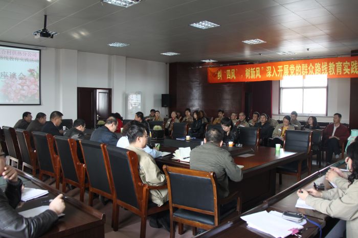 2014年3月24日,城發(fā)公司黨的群眾路線教育實踐活動領導小組成員副總經理史繼文、紀委書記寶音達來深入活動聯(lián)系點三合村供熱分公司與職工群眾面對面開展征求意見活動,人力資源部部長郄俊生、紀檢監(jiān)察室副主任王軍一同參加了征求意見活動。公司領導與41名職工代表面對面,召開了意見征求座談會,并深入運營二所,與20多名一線員工親切交流,認真聽取了他們關于工作、生活上的意見和心聲。