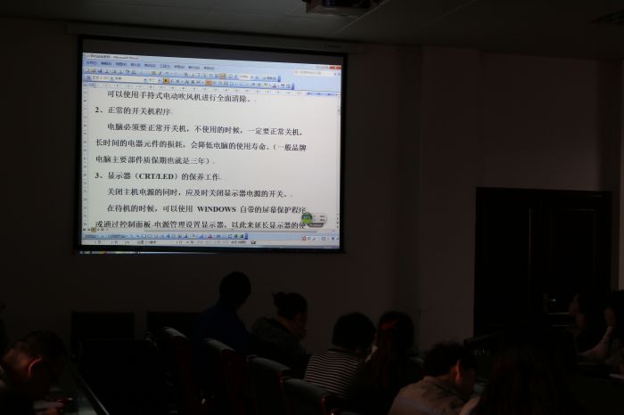 “以上是對主操作界面功能的簡單介紹,請大家看我如何具體操作,有什么不明白,可以隨時提問……”。12月19日至24日,分公司組織各部門行政人員70余人在分公司三樓會議室進(jìn)行冬季辦公軟件培訓(xùn),綜合辦公室張強勝詳細(xì)講解了包括WORD文字處理、EXCEL電子表格、PPT演示文稿如何使用及網(wǎng)上無紙化辦公的操作流程。