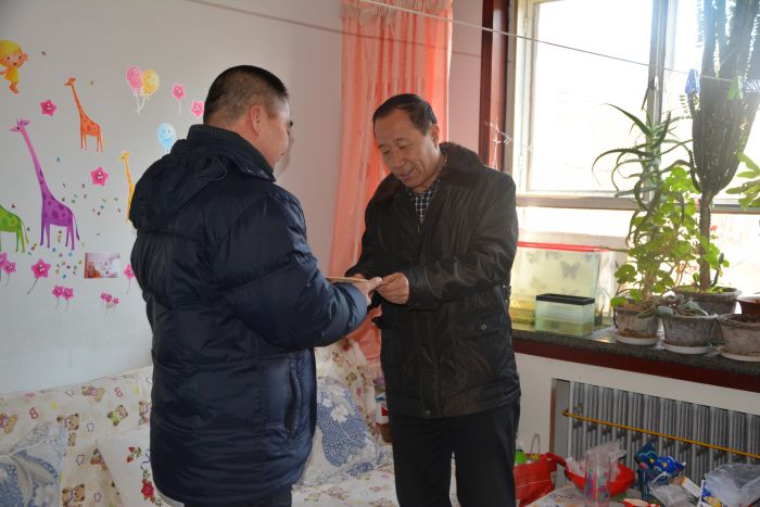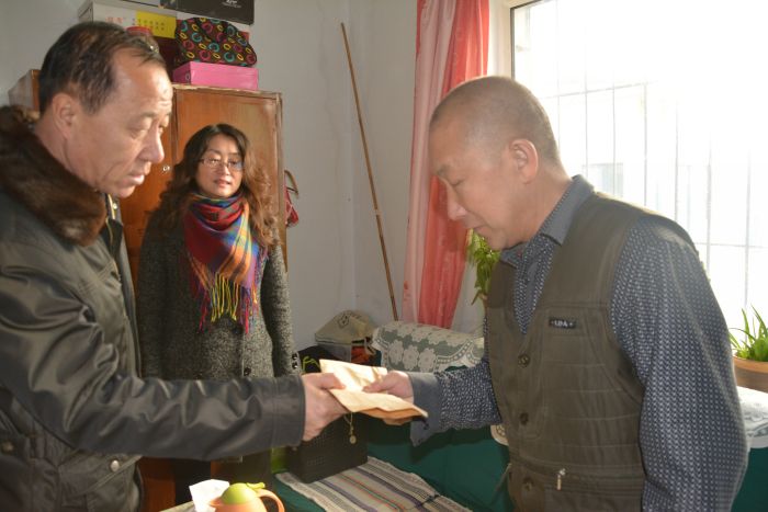 上午10點,橋靠分公司黨支部書記郭澤文、副經理賈玉萍、黨群處主任尹潔帶著全公司領導和員工們深深地關懷之情,捎著新春的問候和祝福先后對分公司三名困難職工孟義、邱建設、李志國進行走訪慰問工作。