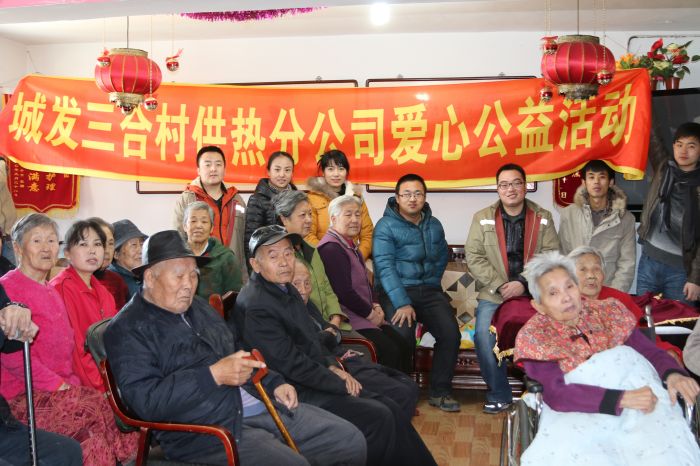 2015年1月,三合村供熱分公司黨支部、團支部發起倡議,號召廣大干部職工將舊衣物、生活、學習等日常用品,捐助給周邊敬老院、貧困山區等弱勢群體渡過寒冬。在本次活動一個月的時間里,每天都有熱心的干部職工送來棉衣、書包等生活用品,捐贈衣物三百余件。