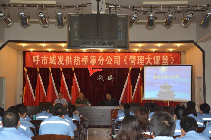 2015年6月25、26日,橋靠分公司組織全體環節干部、后備干部參加《管理大課堂》培訓活動。目的是提高環節干部的管理思維和管理能力,打造一支管理水平過硬的團隊。此次培訓請到了內蒙古工業大學長青教授、符亞男副教授。