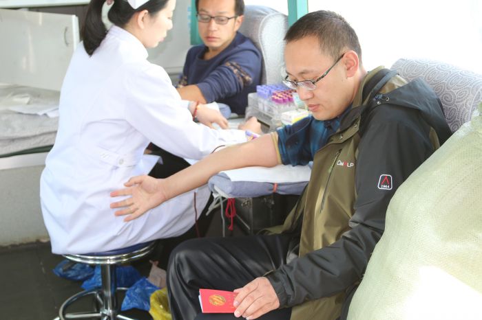 上午9時,待呼和浩特市血液中心獻血車抵達廠區后,員工們認真填寫信息登記表并有序進行采血化驗。采血過程中,他們有說有笑,一邊為自己能對社會做一點力所能及的事感到滿足和自豪,同時也用笑語沖淡采血過程中產生的緊張心理。整個填表、測血壓、排隊化驗過程始終在一種輕松、愉快的氛圍中有序進行。身體檢查合格可以獻血的同事們更是興奮不已……