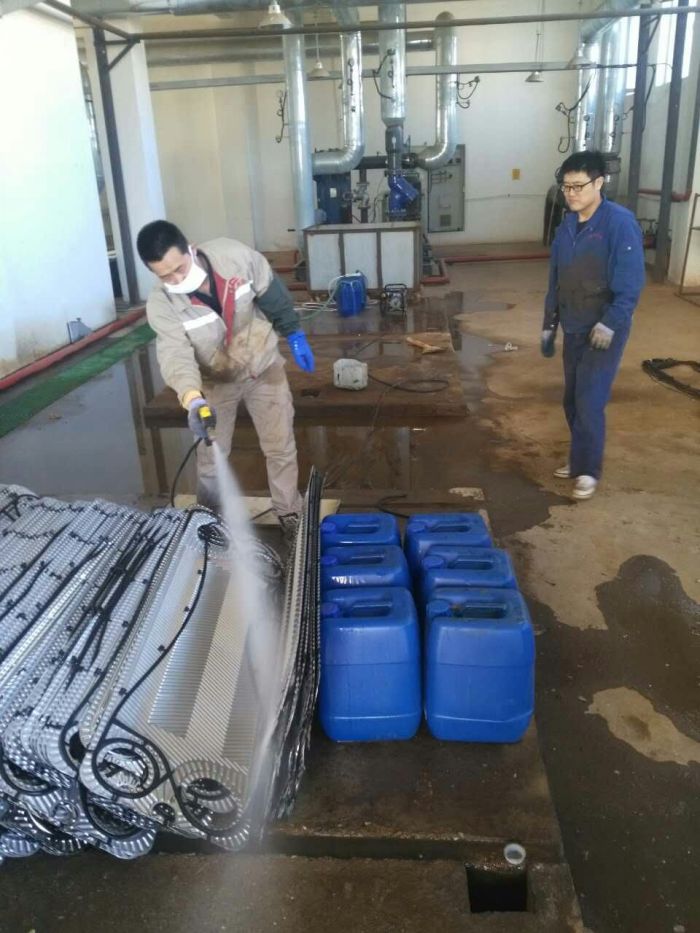 三合村供熱分公司 展開清洗板式換熱器工作