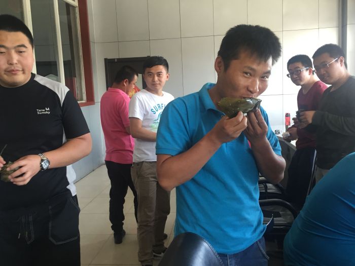 活動中,青年相聚在分公司食堂,只見大家手法嫻熟地洗粽葉、綁線,不到一分鐘,一個新鮮碧綠、飽滿漂亮的粽子完成了。其中,有很多青年是第一次包粽子,她們欣喜地拿著粽葉向身邊的同事請教,在粽香里感受著分公司在傳統佳節時的溫馨氣氛和獨特魅力。粽子煮好后,工會副主席朱迪、團支部書記王藝,第一時間將其送到了正奮戰在生產一線的職工手中,表示了節日的慰問和祝福。