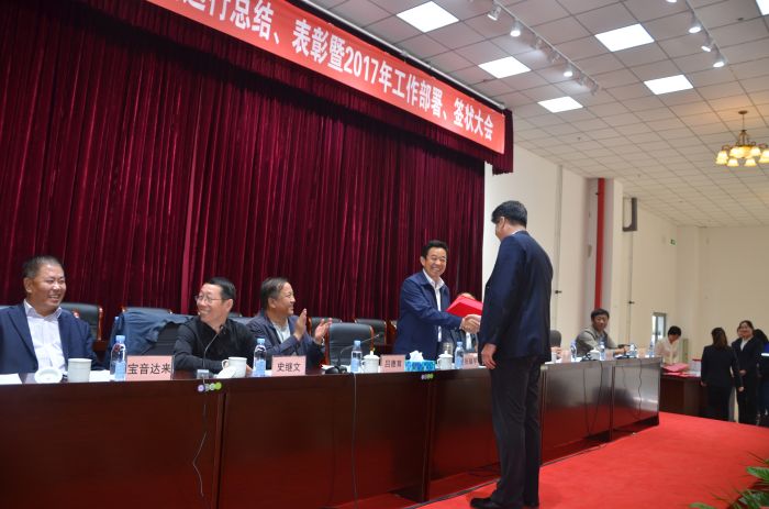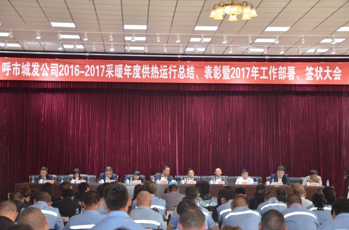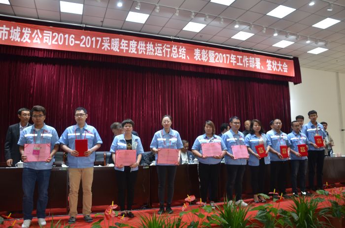 會上,吳利勤副總經理作《呼市城發(fā)供熱有限責任公司2016—2017采暖年度運行總結》報告;黨委副書記張永宣讀《城發(fā)公司黨委關于表彰2016年度先進集體、優(yōu)秀干部和勞動模范(先進工作者)的決定》,授予辛家營分公司等18個單位“呼市城發(fā)公司2016年度先進集體”、吳利勤同志“呼市城發(fā)公司2016年度優(yōu)秀高層干部”、呂曉玲等15名同志“呼市城發(fā)公司2016年度優(yōu)秀中層干部”、李娟等77名同志“呼市城發(fā)公司2016年度勞動模范(先進工作者)”榮譽稱號,并頒發(fā)獲獎證書;總經理呂德育與內蒙古少數民族群眾文化體育運動中心項目等負責人簽訂責任狀。
