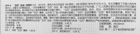 2019年發行的紀念五四運動一百周年紀念郵票的簡介中這樣概括“五四”運動:“是一場以先進青年知識分子為先鋒,廣大人民群眾參加的徹底反帝反封建偉大愛國革命運動,是中國近代史上具有里程碑意義的重大事件。“五四”運動倡導的愛國、進步、民主、科學思想對實現中華民族偉大復興的中國夢具有重大意義。”
