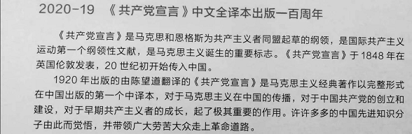 圖5:【《共產黨宣言》中文全譯版出版一百周年】紀念郵票簡介