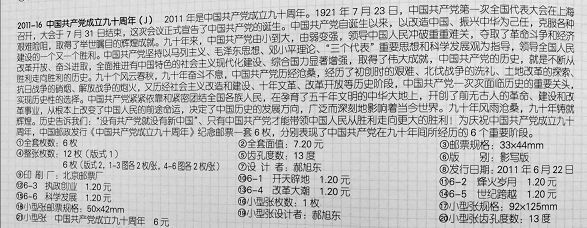 圖9:《中國共產黨成立九十周年》紀念郵票簡介