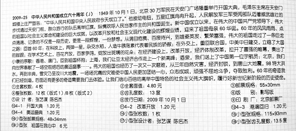 圖25:《中華人民共和國成立六十周年》紀念郵票簡介