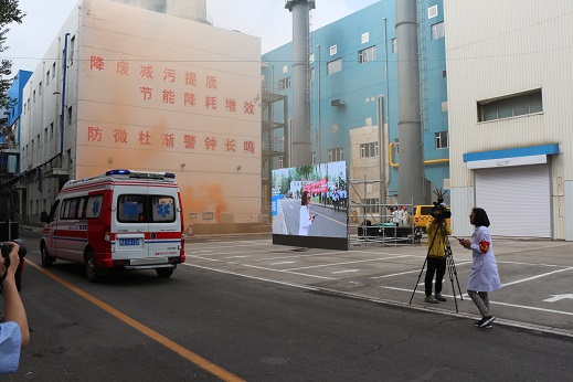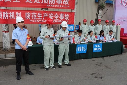 模擬演練的場景是2019年2月18日上午9時許,學苑東街城發供熱橋靠分公司廠區內發生天然氣泄漏,燃氣味很濃,且燃氣已擴散至廠區脫硫車間室內,導致一名員工窒息。橋靠分公司立即啟動《城發供熱橋靠分公司生產安全應急預案》,進行初期救援與疏散,撥打96707服務熱線通知燃氣公司。中燃公司接警后,立即通知搶險鑒定和值班人員趕赴現場,部署相關救援單位實施搶險工作。經過各參演單位的精心組織,周密安排和密切配合,救援演練達到了預期效果,取得了圓滿成功。