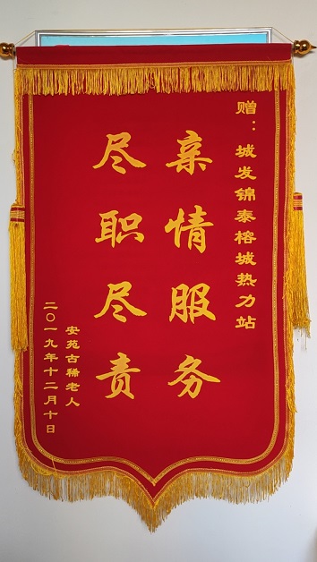 “太感謝你們了,家里現(xiàn)在暖和多了,真是為我們老百姓解決了實(shí)際困難”。12月10日上午,東達(dá)安苑小區(qū)居民劉大娘親手將寫(xiě)著“親情服務(wù) 盡職盡責(zé)”的錦旗送到辛家營(yíng)分公司錦泰榕城熱力站運(yùn)行人員手中。