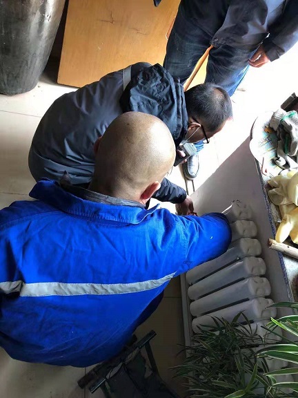 薛剛組長走訪整個環線的最末端用戶時,發現家里暖氣沒前幾戶那么熱,測溫小組測溫19度。工作人員排查后發現是集氣所致,當時為用戶排氣,用戶在一旁學習如何排氣。二十分鐘左右暖氣片明顯比之前熱了,再次測溫22度。