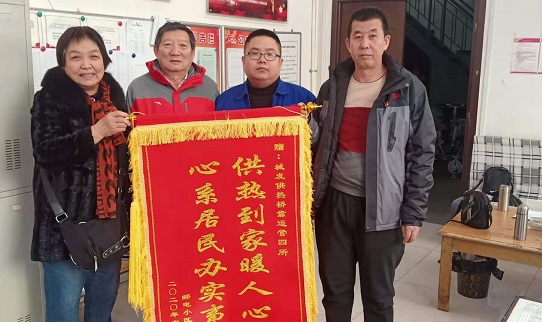 11月26日上午,家住郵電小區(qū)的用戶代表,給橋靠分公司第四運(yùn)營所送來了繡有“供熱到家暖人心,心系居民辦實事”的大紅錦旗。