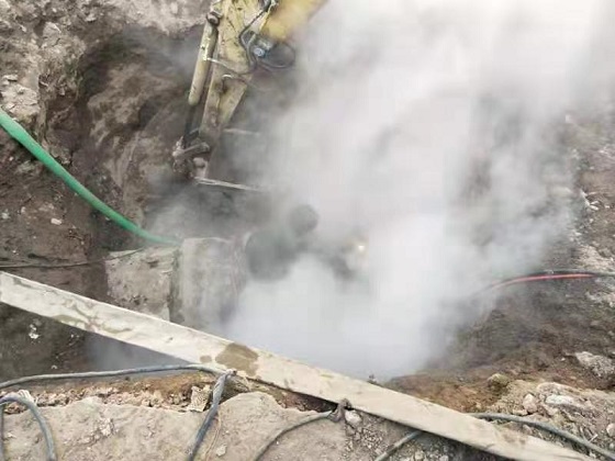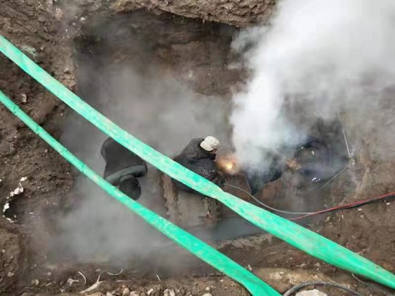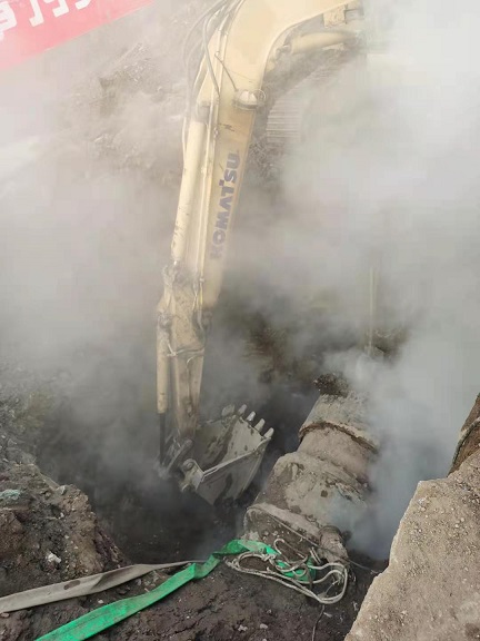 分公司立即組織人員連夜進行搶修,現場采用挖掘機和人工開挖相結合的方式查找失水點,12月4日下午4時找到失水點。找到失水點后,檢修人員關閉漏點前后端閥門,運營所人員開始站內泄水。此次失水管網管徑為DN900,管道內水量較多,泄水耗時長,室外氣溫較低,給搶修工作增加了難度。搶修人員不分晝夜全力投入到搶修工作中,經過52小時不間斷搶修,于12月6日中午恢復了供熱。