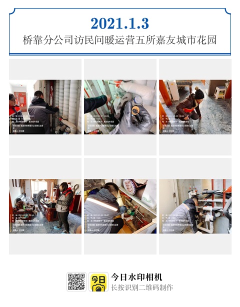 2020年12月31日、2021年1月3日,橋靠分公司“訪民問暖”小組走訪竹園西區小區和嘉友城市花園小區,共走訪用戶46戶,其中到訪不遇15戶,現場解決不熱問題9戶。
