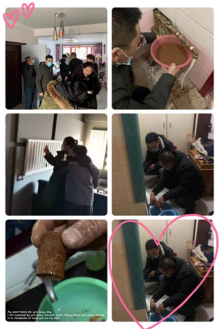 2021年1月3日,走訪了嘉友城市花園小區,該小區有用戶打電話到運營所和物業反映家中溫度不高,希望工作人員能上門查看。訪民問暖小組著重對這些用戶逐戶上門排查。一共走訪10戶用戶,其中1戶到訪不遇。現場對8戶用戶的管井內入戶進水管濾網進行了清洗,放水,并查看了室內分集水器,閥門未全開的全部打開,有集氣的進行排氣處理,針對老舊分集水器,給出整改方案,同時采集了室內溫度,后期持續觀察。還有1戶商業,是一個飯店,是老大難問題,室溫15℃,長期不熱,不熱的主要原因是用戶裝修時將一樓水暖改成地暖,二樓保持水暖,整體屋內不循環,一樓分集水器加裝循環泵,循環泵沒有開到最大。查看管井時發現供水溫度正常,回水沒有溫度,而且回水閥門損壞不易開關。工作人員現場在管井內將濾網拆下清洗,大量的放水,室內分集水器多余的濾網拆除,將循環泵開到最大,觀察了一會兒后,回水管慢慢有了溫度。運營所供熱管家將對室內溫度進行持續觀察。