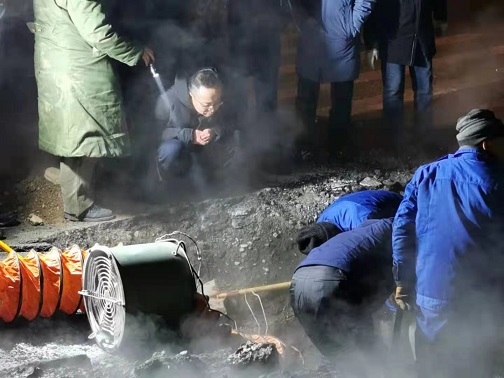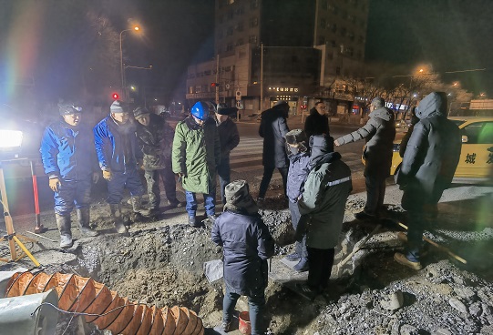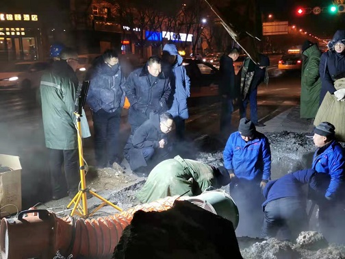 2020年12月31日上午9點,橋靠分公司經理阮強召集分管經理、相關部門、運營所召開緊急會議,對這次搶修做出整體部署,同時根據漏點情況制定搶修方案。阮強要求,本次搶修以補為主,要盡最大努力在保證正常供熱、不影響交通的情況下處理好漏點。