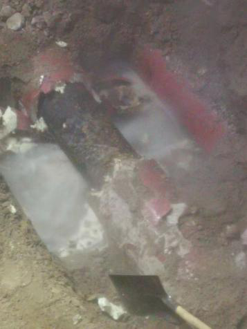 二所副所長白云偉立即啟動(dòng)嚴(yán)寒期管網(wǎng)搶修預(yù)案,聯(lián)系保駕護(hù)航維修單位調(diào)集挖掘機(jī)進(jìn)入現(xiàn)場。白云偉與現(xiàn)場維修人員仔細(xì)研究后,確定最佳搶修方案。由于當(dāng)日氣溫極寒,跑水位置的瀝青路面、墊層、凍土層太厚、太硬給開挖過程增加了難度。晚上八點(diǎn)搶修人員找到漏點(diǎn),發(fā)現(xiàn)二次網(wǎng)DN250焊接鋼管因年久腐蝕爆裂。為保證小區(qū)用戶及早供熱,二所人員和保駕護(hù)航單位爭分奪秒與天氣賽跑,努力奮戰(zhàn)1小時(shí)后,于晚上9點(diǎn)恢復(fù)供熱。