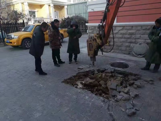 上午11時,經過檢修人員縝密排查,在小區9號樓西側一口井里發現了跑水情況。由于DN50直埋管彎頭腐蝕老化,出現兩處較大漏水點,需對其進行更換維護。發現問題后,搶修組及時向分公司匯報了情況,同時聯系挖掘機并組織人員準備進行搶修。由于挖掘機白天市區限行,經多方協調,挖掘搶修工作于下午15點40分左右展開。