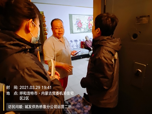 3月29日——4月3日,城發(fā)橋靠、辛家營(yíng)、三合村三個(gè)分公司赴互泰鍋爐房小區(qū)、黨委小區(qū)、討號(hào)板小區(qū)、呼和佳地等58個(gè)小區(qū)集中開展2020——2021年度第十九次“訪民問暖”,共走訪用戶306戶,發(fā)放《城發(fā)服務(wù)手冊(cè)》52冊(cè)。