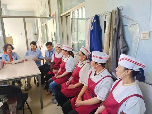 主要針對食堂環(huán)境衛(wèi)生、食品和人員安全管理、燃?xì)庠罹咴O(shè)備管理等方面進(jìn)行認(rèn)真細(xì)致地排查,發(fā)現(xiàn)安全隱患問題及時落實整改。并結(jié)合近期湖北十堰及我市接連發(fā)生的多起安全生產(chǎn)事故,郄俊萍主任組織食堂全體職工進(jìn)行安全生產(chǎn)學(xué)習(xí)。強(qiáng)調(diào)大家要提高思想認(rèn)識,不忘前車之鑒,把安全生產(chǎn)牢記在心,在日常工作中嚴(yán)格執(zhí)行操作規(guī)范,切實保障食堂安全供餐。加強(qiáng)食品安全管理,嚴(yán)把食材采購關(guān),杜絕變質(zhì)腐壞食材流入食堂;切實強(qiáng)化責(zé)任意識,規(guī)范做好食材存放管理工作,避免食材交叉污染,廚房重地嚴(yán)禁放置強(qiáng)酸、有毒物品,確保食品安全。認(rèn)真做好廚房設(shè)備設(shè)施安全管理,杜絕燃?xì)庠罹呋馂?zāi)隱患,嚴(yán)禁手持刀具嬉鬧,確保食堂人員安全。