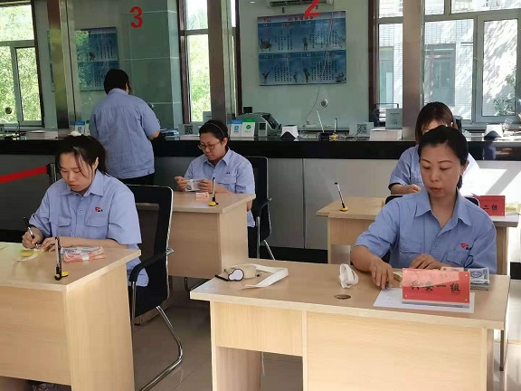 上午9時整,點鈔技能比賽拉開了收費業務大練兵活動的序幕。隨著一聲“開始”,參賽選手們聚精會神,運指如飛,用各式各樣的點鈔手法,緊張而迅速地清點著手中的鈔票,展現了扎實的點鈔功底。點鈔比賽結束后,接著進行了打字比賽,一聲開始,大廳內瞬間想起來噼里啪啦敲擊鍵盤的聲音,員工們指法嫻熟,文字從指尖傾瀉而出。情景收費模擬現場,參賽班組按照收費操作流程即儀容儀表、文明用語、手勢動作、微笑服務、唱收唱付等內容進行演練,以簡明、快捷的詢問方式模擬辦理業務的流程。折射出各班組在日常收費工作中良好的精神面貌、協作的團隊精神和規范的“春風”服務。