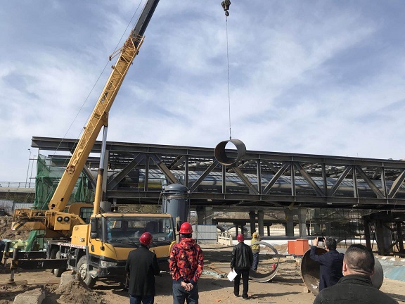 目前,跨小黑河桁架T型膨脹節已到場,金橋分公司副經理薛剛組織項目監理單位、設備廠家、施工單位進行了現場的技術交接工作,以確保下一步T型膨脹節更換安裝作業安全、準確的進行。