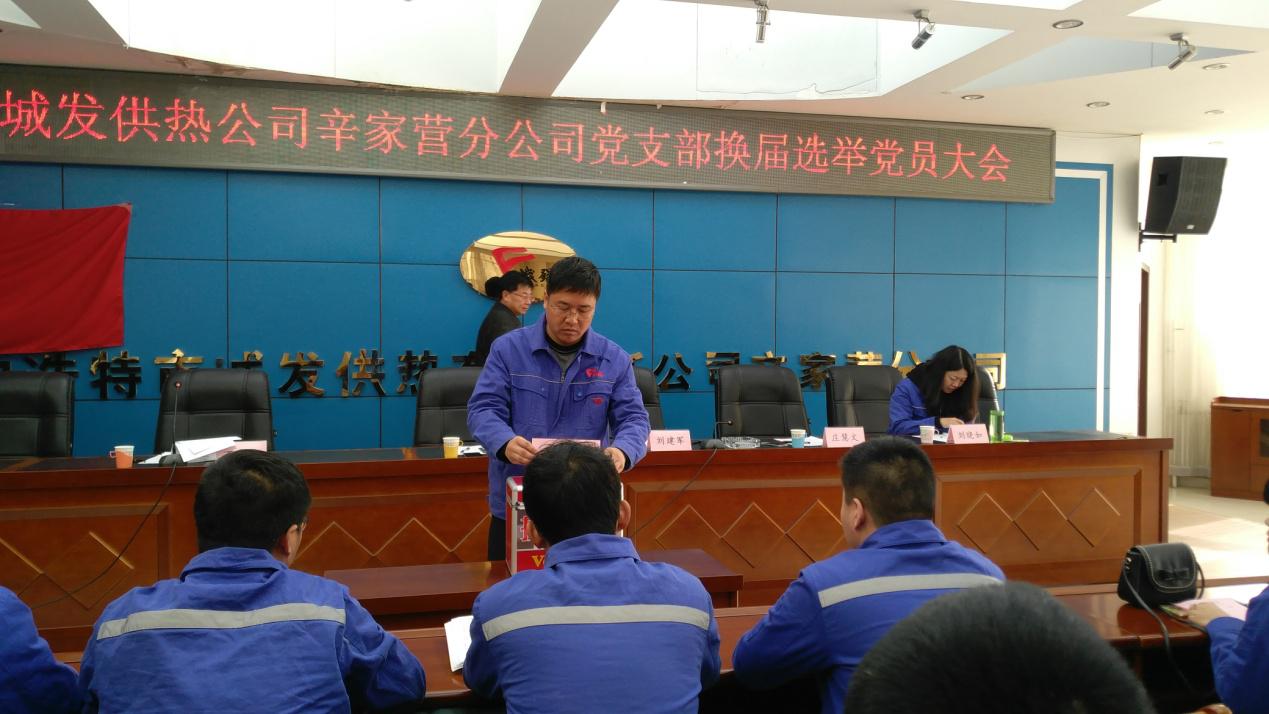 2016年11月22日上午,辛家營供熱分公司黨支部召開換屆選舉黨員大會。會議由黨支部書記丁成斌主持,城發公司黨委委員、副總經理劉建軍同志以支部普通黨員的身份參加了本次黨員大會,市委派駐城發公司紀檢組副組長莊慧文同志列席參加。支部現有正式黨員33名,預備黨員2名,因事請假4人,29名有表決權的正式黨員參加了會議。