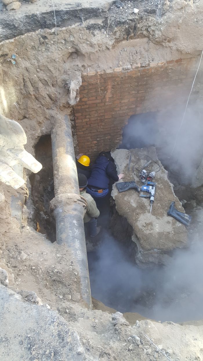 此次搶修失水點位置深,周邊環境復雜,前端竄水嚴重,施工難度大。經分公司人員和保運單位人員齊心協力,在凜冽的寒風中,辛苦奮戰三天四夜,終于在1月20日22點恢復正常供熱。文/錢有澤 圖/祁凱