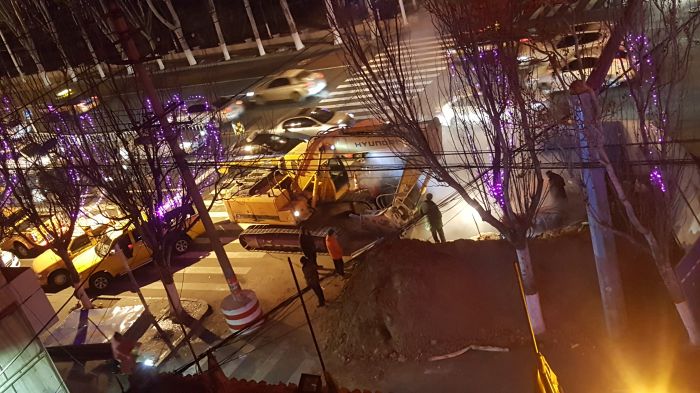 2017年1月17日上午,橋靠供熱分公司第二運營所工作人員發現烏蘭察布路與35中西巷丁字路口DN350一次管網泄水井處可能一次網跑水,需及時搶修。由于失水點位于烏蘭察布路主干道,經公司人員當面與執勤交警協商,決定利用夜間搶修施工。